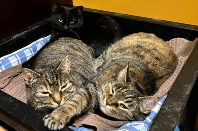 Raitapaitaiset sisarukset Iitu ja Myy ovat jo parisen vuotta etsineet yhteistä kotia. Sitä olemme kummastelleet kun tytöt ovat kuitenkin kainoudestaan huolimatta kovin kotikissatyyppejä. Rakastavat lämpöä, köllöttelyä ja leikkiä. No ehkä he ovat vaan odottaneet sitä seurueen kolmatta jäsentä, nuorehkoa, arkaa poikakissa Rudolfia. Rudolf hyväksyttiin heti tähän laumaan. Ja niin tiivistämä kolmikko on, että emme raaski…